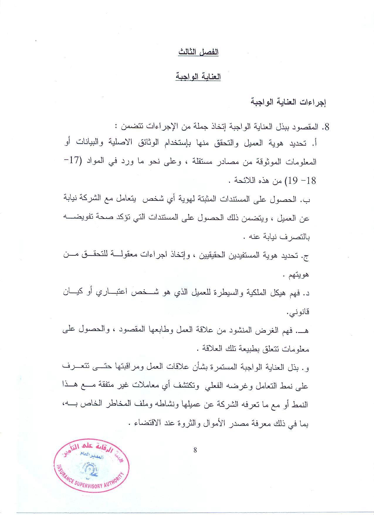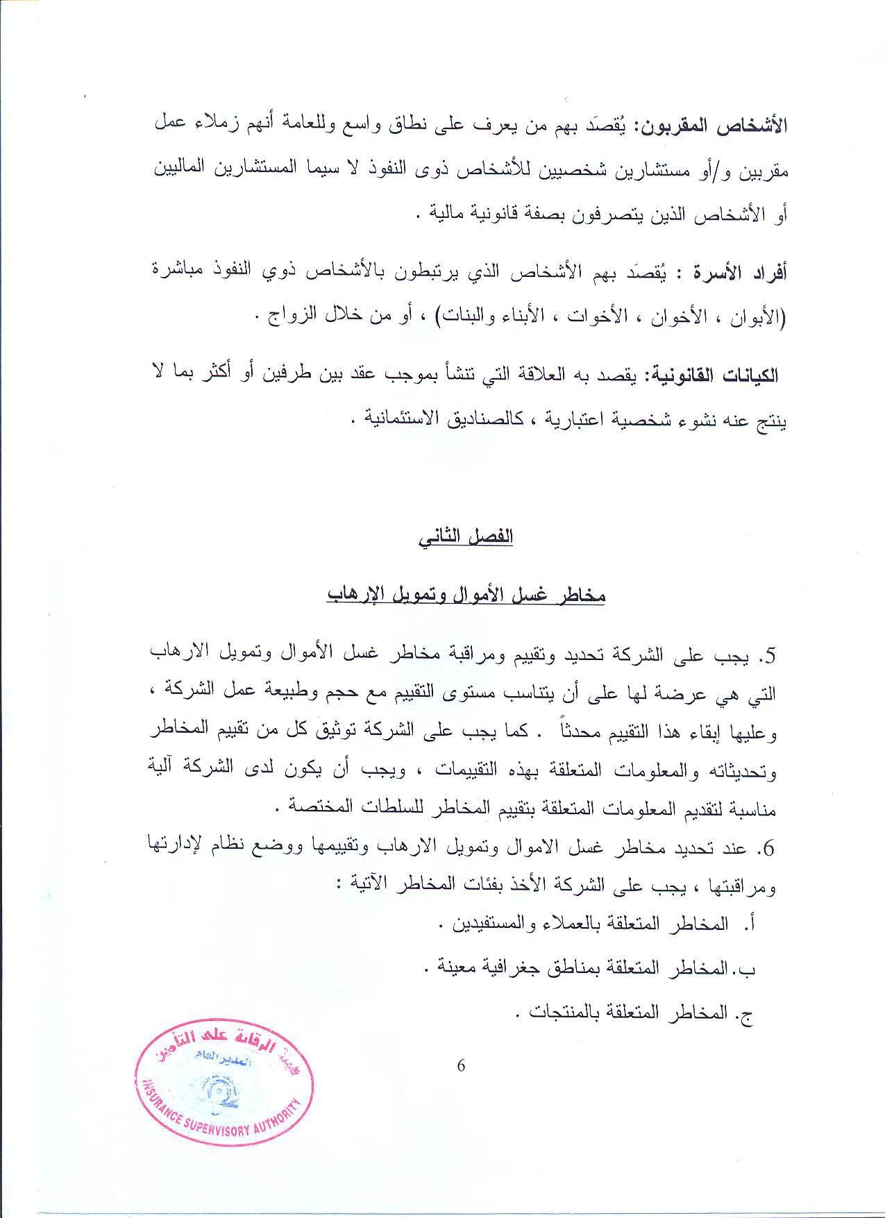 لائحة مكافحة غسل الأموال وتمويل الإرهاب الصادرة عن هيئة الرقابة على التأمين.